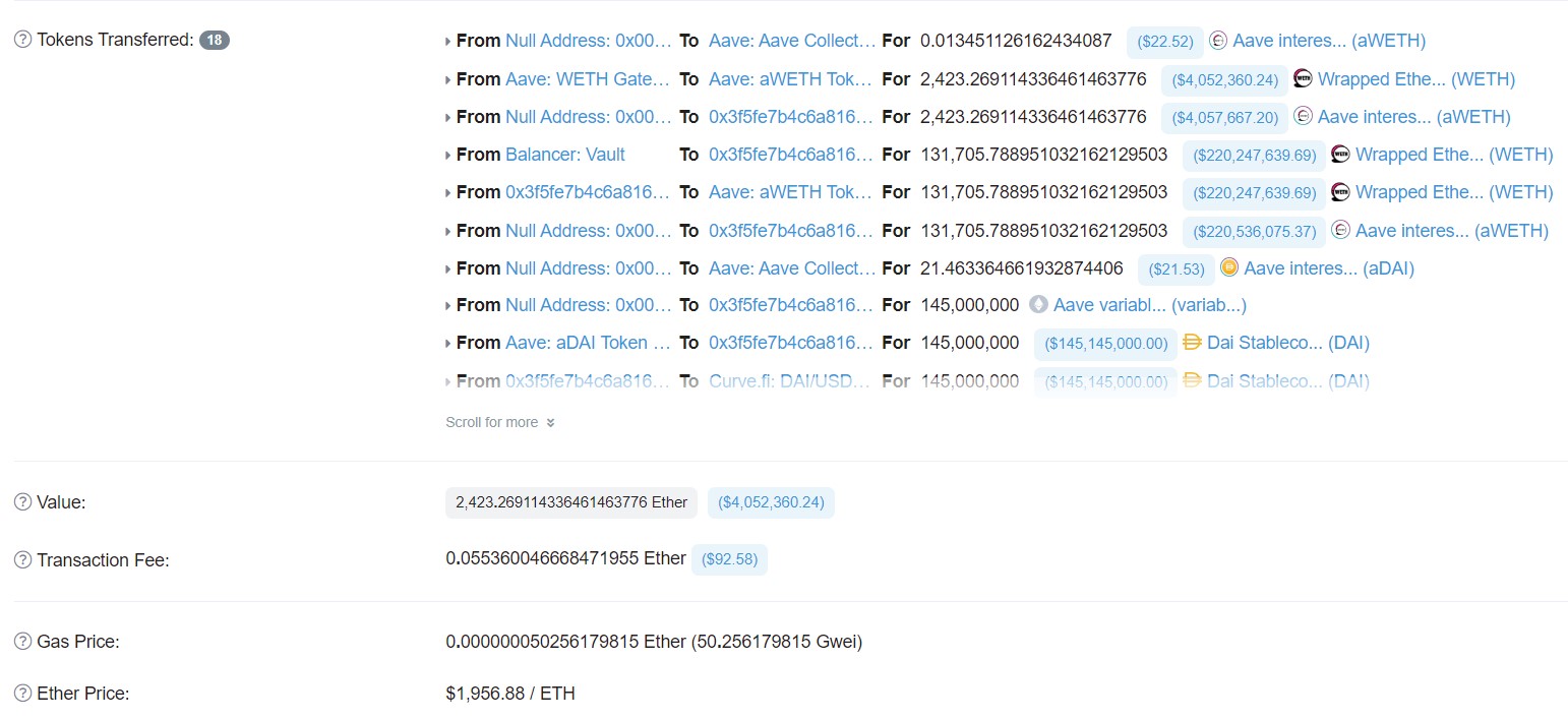 El monedero del ejemplo es una de las cuentas conocidas del pseudónimo Tetranode, una de las ballenas más importantes en el ecosistema DeFi.