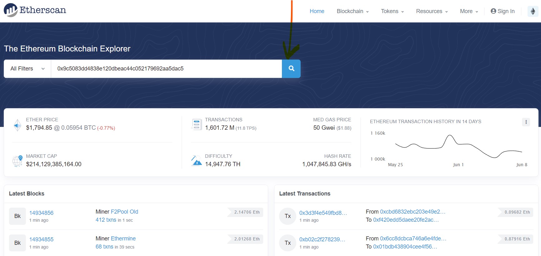 Por ejemplo, buscamos esta dirección 0x9c5083dd4838e120dbeac44c052179692aa5dac5: