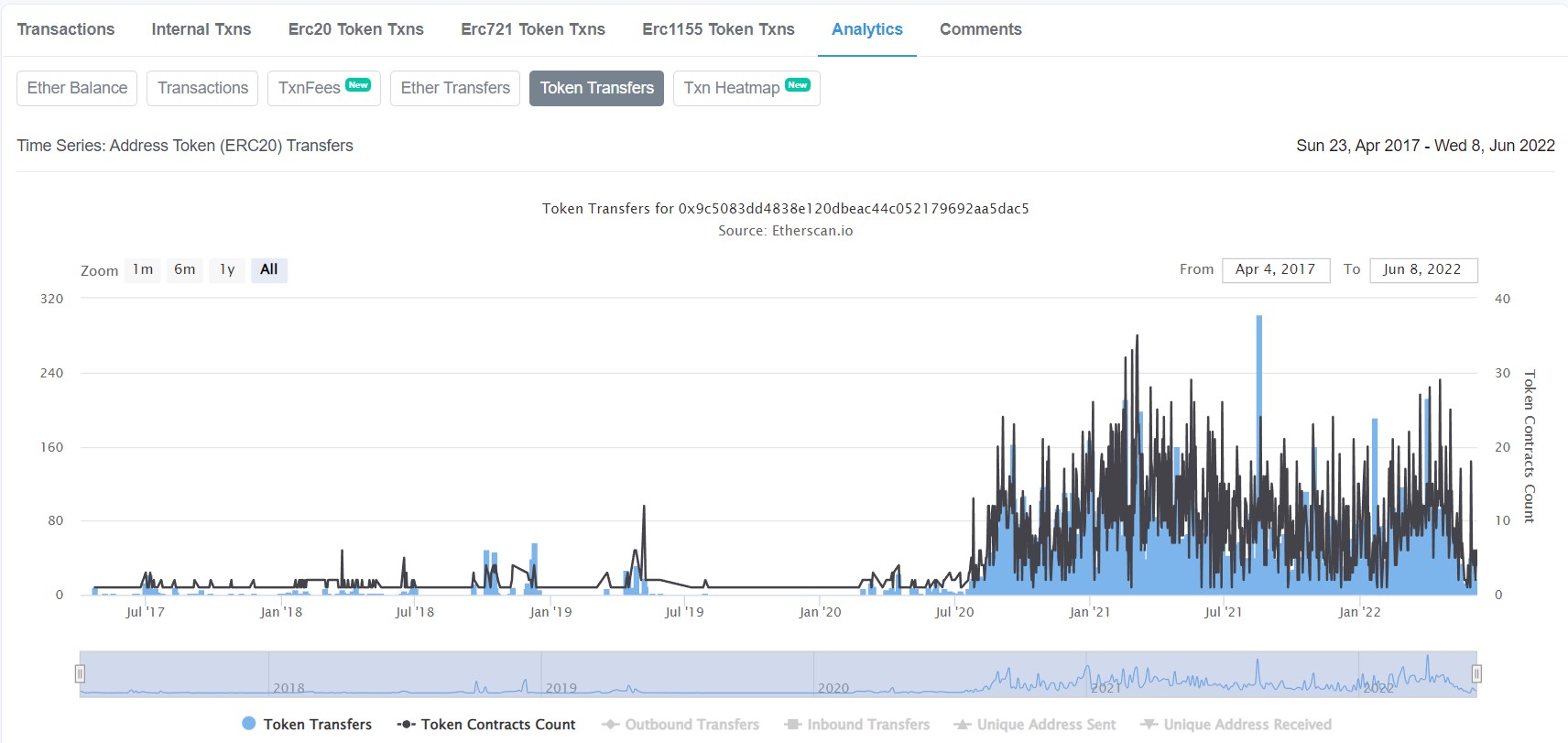 - En la pestaña de “Analytics” podemos ver algunas estadísticas de diferentes parámetros de esta dirección desde su creación.