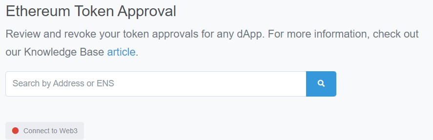 - En la página principal de “Token Approval”, conectamos el monedero dando en el icono de “Connect to Web3”.